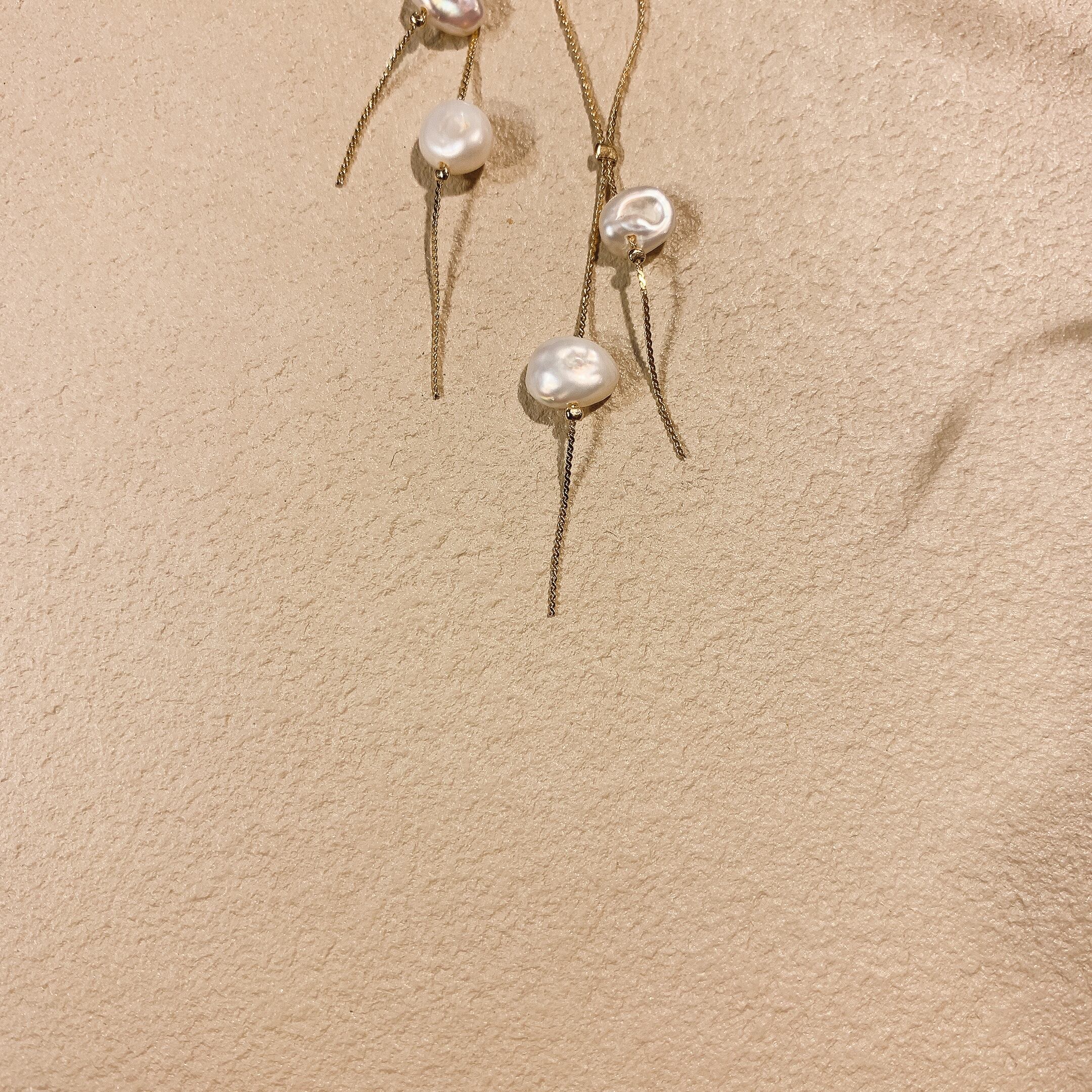 チェーンの繊細さと、ナチュラルなパールが与えてくれる印象は、素敵な大人の女性。