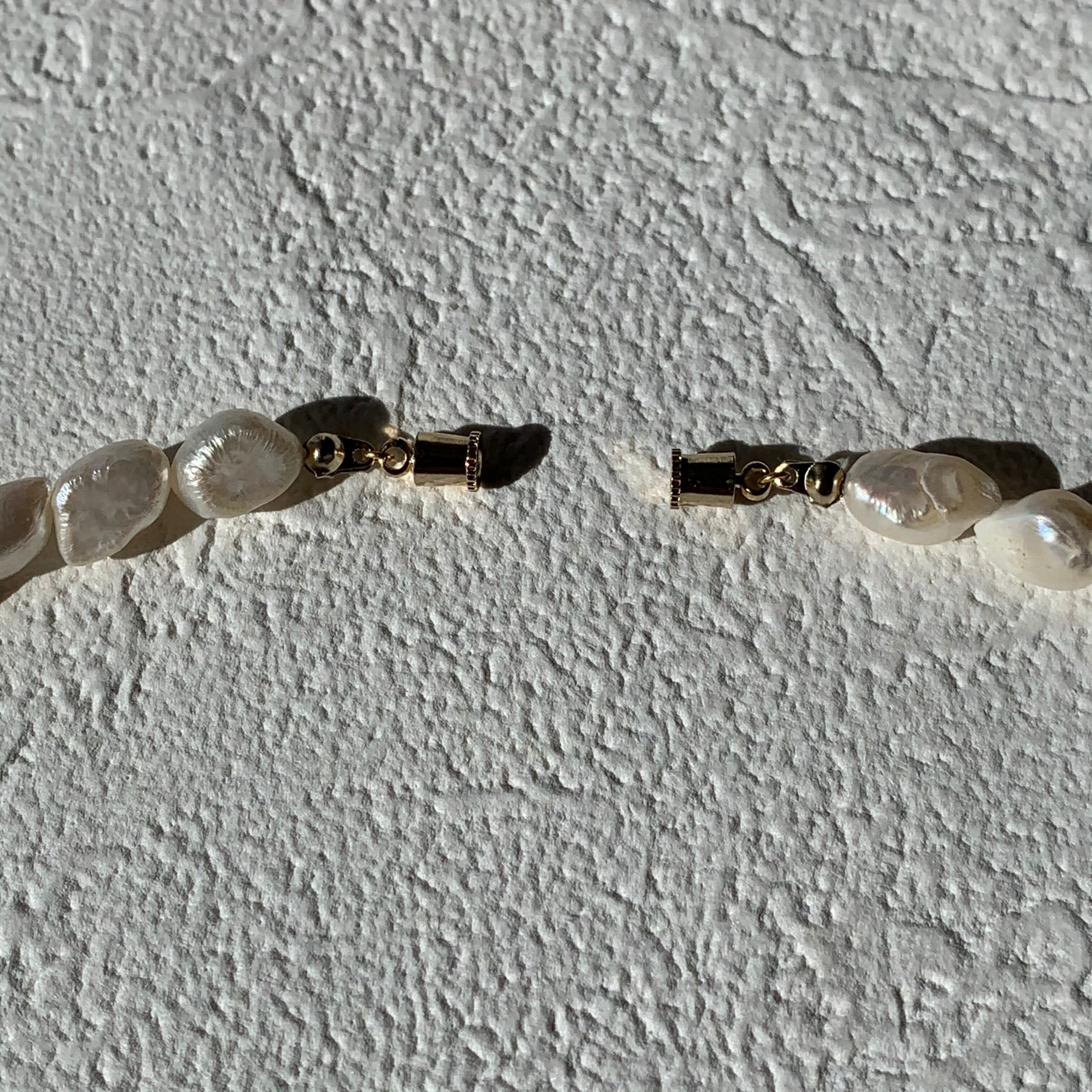 きれいに揃ったパールではなく、ラフなスタイルに取り入れやすいようあえて歪なパールを選んでいます。