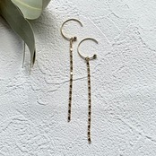 華やかに全部、シンプルにフープピアスのみ、上品にストーンだげ、エレガントにチェーンのみ、と…
